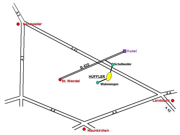 Anfahrt über die BAB 62, Anschlussstelle KUSEL